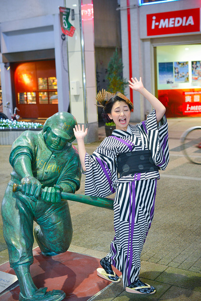 先日発行されたフクフクの撮影後に、テクスファームの西原さんが美少女モデルちゃんを連れて古町5番町へ・・・何をするかと思ったら山田太郎の銅像の前で・・・笑