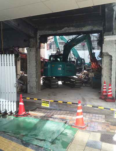 さて、ワズの斜め前くらいの建物、年末から解体工事してましたがかなり進んで中が見えました、凄い事になってます。