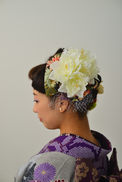 ワズの撮影プランは、このような素敵な髪飾りを自由に使えるって事も人気の一つです、この大きなのだけでも販売価格は1万円くらいですが、それ以外もつけ放題です 笑