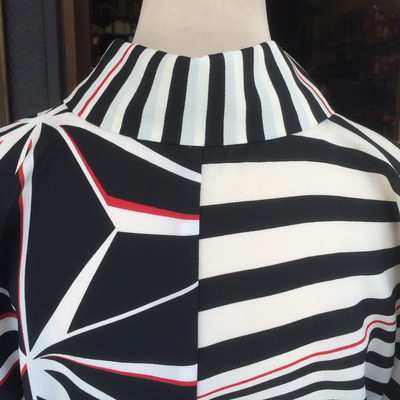 はい、ワズお得意のこのパターンです、2枚の柄を組み合わせて仕立てて、他には無い斬新なゆかたを作っています。