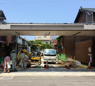 でも普通の駐輪場じゃ面白くない!上古町らしい楽しい駐輪場にしたい!と昨年から協議をしてきましたが、よくまとまらないまま工事が始まりました、どうなるんだろ。