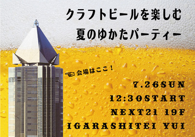 会場はNEXT21の19階にあります、五十嵐邸結さんです、最高のロケーションでゆかたを着て昼からスワンレイクビールで乾杯・・・想像しただけでも楽しい。