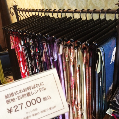 ユカタが減ってスペースができたので、レンタルキモノを見やすく並べました、秋の結婚式の招待状が届いた方も多いのではないでしょうか?是非ワズのキモノレンタルをご利用ください。