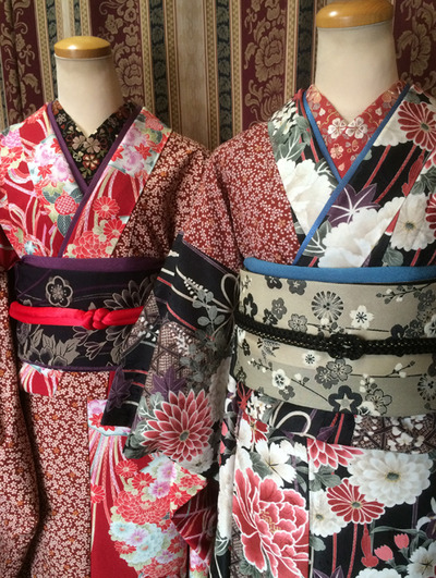 はい、ゆかたセールはまだまだやってます!!が、ディスプレイはゆかたから振袖にチェーンジ!です、柄は違いますが色違いっぽい、これを成人式でお友達同士で着たら素敵だと思いますよ。