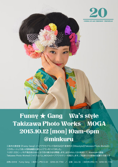 上越はまだこれから詳しい事を決めていきますが、三条はとりあえずすでに展示会の日が決まってます、10月12日月曜日の祝日になります、三条市の一ノ木戸商店街にあります「みんくる」さんで開催です、県央地域にお住まいで成人式衣装、撮影に興味のある方は是非見に来て下さい。