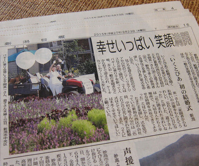 ワズも参加しているブライダルチーム ARCH ですが、この連休も2件のブライダルをプロデュースさせていただきました、(ボクは今回ほとんど携わっていないのですが・・)そのうちの1件が今日の新聞に載っていました(昨日のニュースでもとりあげられていました)