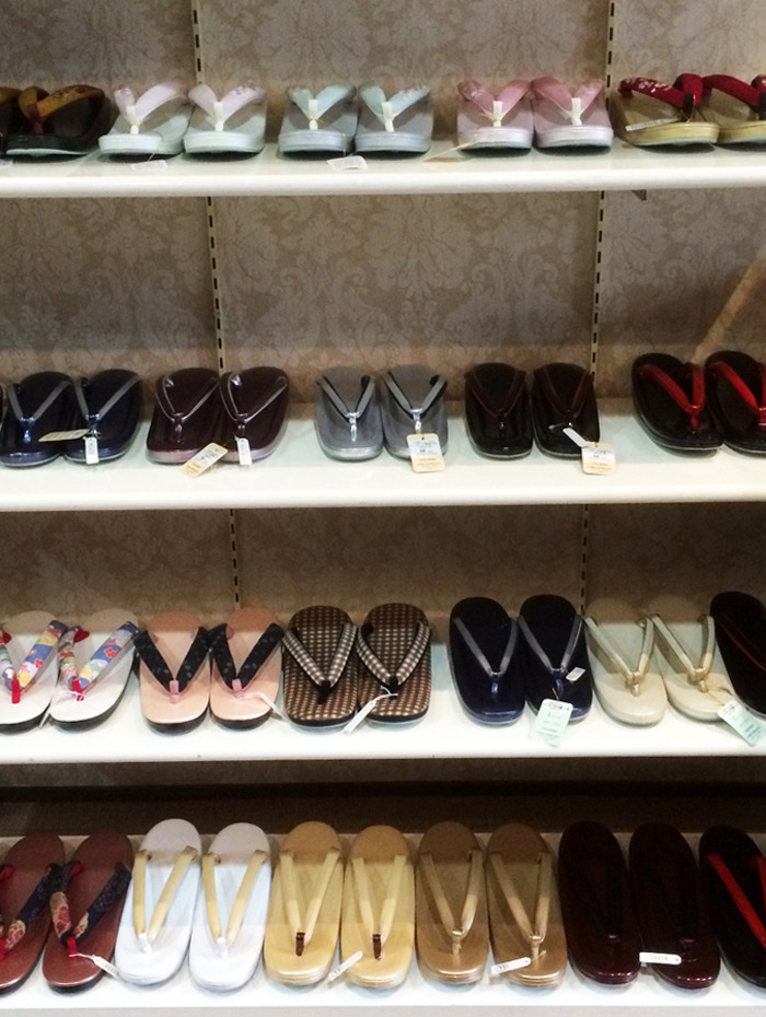 で、ワズスタイルですが、昨日LLサイズの草履が数点入荷してきまして、飾る場所が無かったので思い切って草履コーナーを作りました。