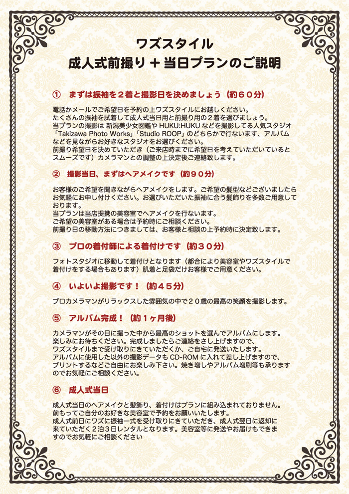すでに再来年の成人式のお客様も多数お問い合わせをいただいております、ありがとうございます。ワズ的にはその年の成人式が終わると翌年の成人式レンタルが決まり始めるって感じですので、よろしくお願いいたします。
