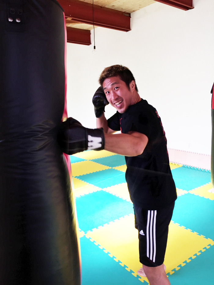 体幹を鍛えるトレーニングをしたあと、グローブをはめてサンドバックや先生のミットでパンチを打ちまくります、蹴りまくります、40歳へとへとです 笑