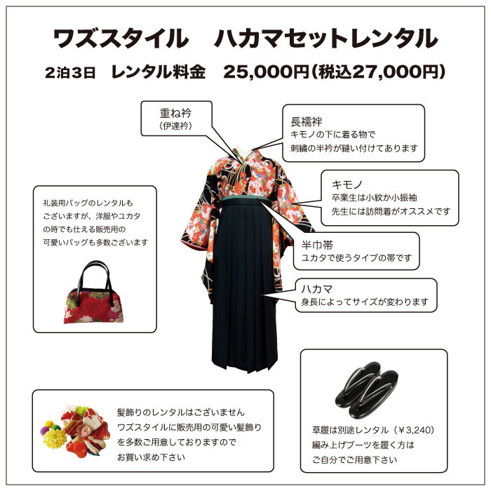 ワズの袴レンタルの詳細はこんな感じで。
