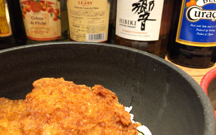ランチからメニューも豊富です、ボクは大好物のタレかつ丼とお蕎麦のセットをいただきましたよ。えー、カウンターなので前にお酒の瓶が写ってますがランチなので飲んでませんよ(そもそも車で行ってますから)