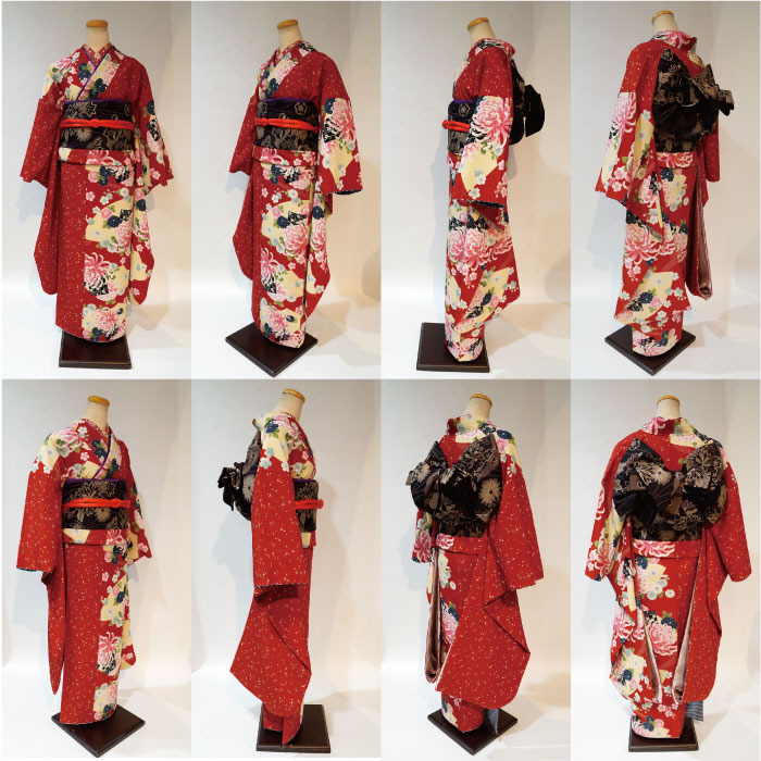 さて、昨日も振袖をボディーに着せて撮影しました、赤い振袖。