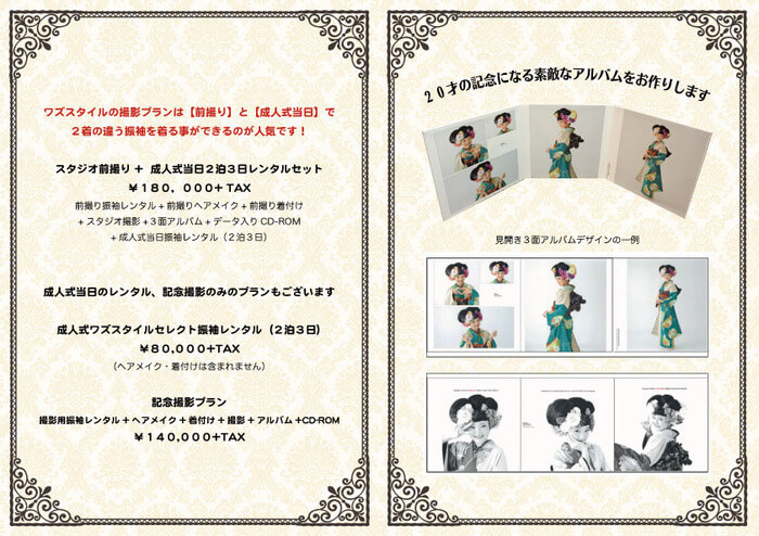 撮影無しで成人式当日用のレンタルでしたらワズに来なくても こちらのページ からご予約もいただけます、7泊プランですので余裕を持ってご自宅にお届け致しますので是非ご利用下さい。
