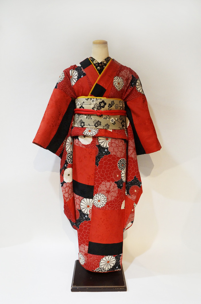 この振袖ワズにとってはけっこう特別な振袖と言うか・・今はこのタイプの振袖もかなり増えてきましたが、10年近く前かなー、京都でブライドの振袖を仕入れてきても新潟県内でも同じブランドを扱っているキモノ屋さんは多いし、ネットで見れば同じのが山程出てくるし・・・それは仕方ないですよね、狭いキモノ業界ですから・・・洋服のように無数のブランドがあるわけじゃないですし・・と悩んでいたのです。