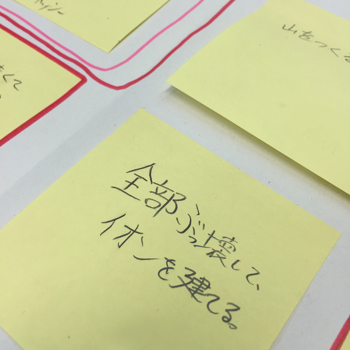 子供達も最初は無難な意見ばかりだったのですが「君たちからそんな保守的な意見は求めていない、もっとぶっ飛んだ意見を出してくれ」と伝えますと・・・どんどん出ます 笑
