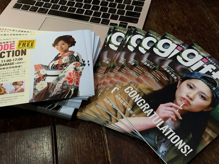と、そろそろ今日のブログを終わりにしようと思ったら佐川急便さんがネタを運んできました、フリーペーパーgift vol54!それと一緒に来月の上越での振袖イベントのフライヤー!!