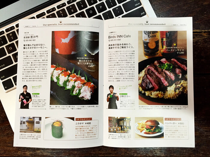 左ページは直江津駅前にある居酒屋毘沙門さんで、最近のボクが直江津に行くと必ず行くお店です、それこそ西谷くんに連れて行ってもらったんだけどここ本当に美味しいです、この写真の「蟹とホタテの蟹ミソ大葉包み」は絶品、あー、3日はイベント後に夕飯をここで食べてから帰ってこようかな・・