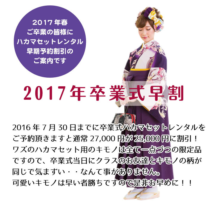 で、卒業式が終わると次の卒業式のお客様からのお問い合わせが増えます「え、そんなに早くから動くの?」はいそうなのです、早い方だと1年前から予約を入れてくれるのです、ありがとうございます、そんな方には少しばかりですが「早期予約割引」としてサービスさせていただきますのでよろしくお願いいたします。