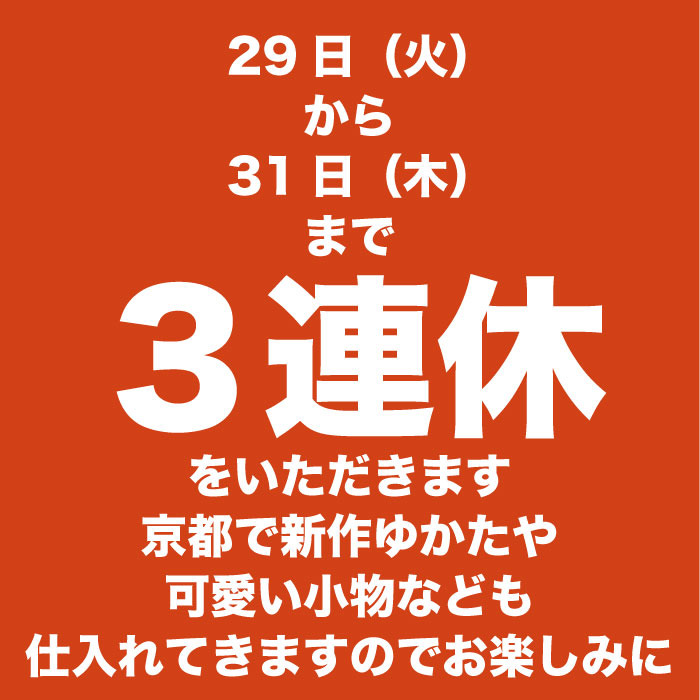 以前から告知しておりましたが、明日29日から31日まで春休みとして3連休をいただきます、毎年卒業式シーズンが終わったこの時期に連休をいただいて心と身体のリフレッシュさせていただいていますが、今年は京都で仕入れもしてくるのであまりのんびりできなそうですが、仕事以外も楽しんでこようと思っています。