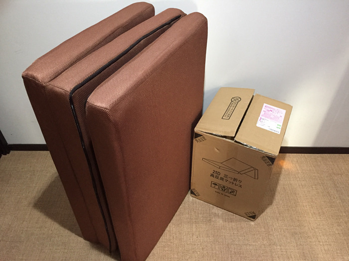 急遽マットレスが必要で、とりあえずネットで安かったので三つ折りのマットレスをポチッと注文したのです、一昨日頼んで昨日届きました、どうなってるんだ日本の配達能力・・凄すぎる。しかし届いたダンボールが小さい・・間違ってる?と思って開けてみたら・・間違ってなかった、マットレスが入ってた、写真で見ても「絶対無理」と思うでしょ、この中にこれが入ってたと言う事実。