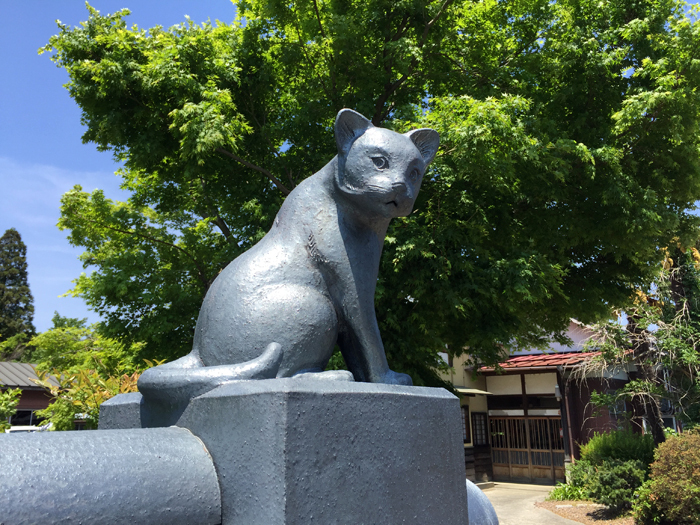 塀の上に瓦でつくった猫ちゃん