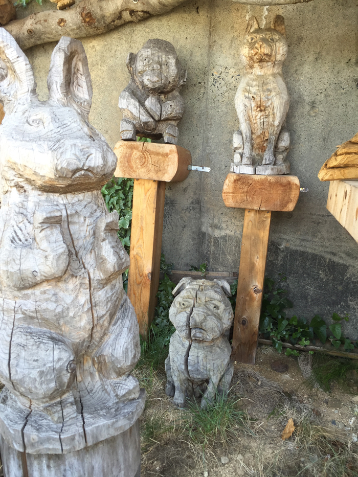 安田ヨーグルト直営店の隣に木彫りアートみたいなコーナーがあって・・・これはパグか?パグなのか?おもいっきり顔が割れてました!!!笑