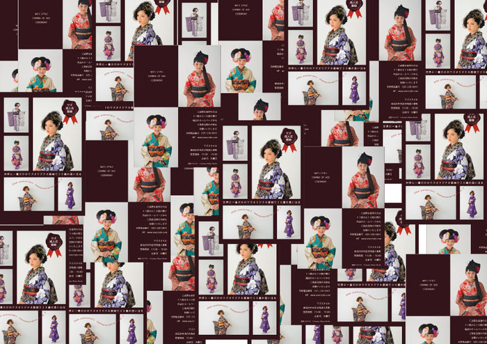 17歳くらいになると、大手衣装レンタル屋さん、大手呉服店さん、大手フォトスタジオさん、様々なところから凄いパンフェレットがどんどん届くというお話を聞きますが、ワズはそのような事はしておりません、できません(送ろうと思えば成人式対象者の個人情報を入手して送る事もできるんだろうけど・・・ボクはそうゆうの苦手なので 笑)