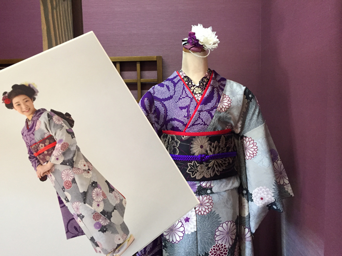やはり「振袖」という非日常のモノは自分が着ているイメージがしにくいと思いますので、できるだけボディーに着せたり、モデル撮影したポスターを飾ったり、アリバムをご覧いただけるように置いていたりしていますが、最終的にはやはり自分できてみないとわからないです。