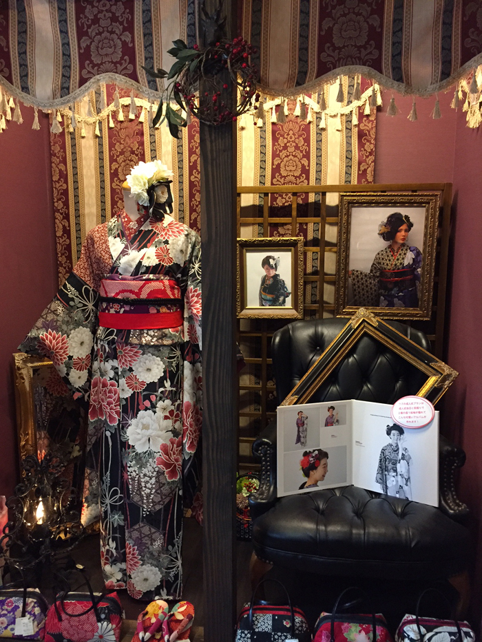 もちろん和柄も好きですが、ワズはあえて店内を洋風アンティーク調にしていますので、それとキモノのミスマッチが良いのです、日本中探してもなかなかこんなキモノ屋は少ないだろう・・・