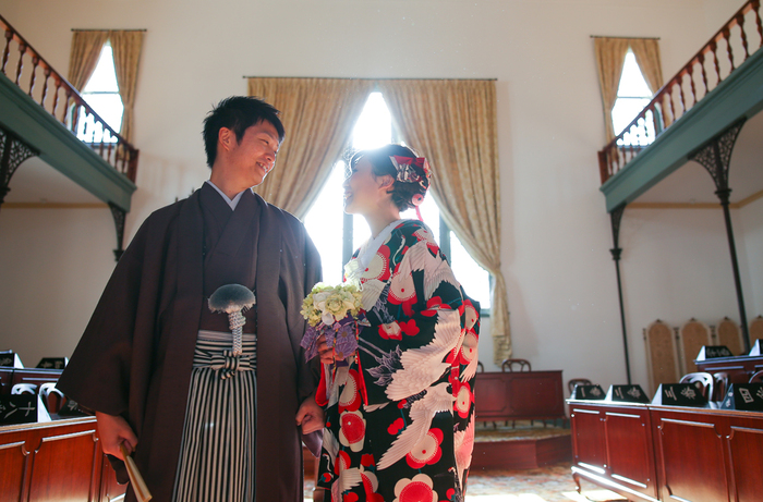 以前にワズフォトブライダルプランのロケで県政の議場で撮った一枚です(お客様にはブログアップ了承していただいてます)なかなかこの雰囲気は新しい建物では出せないのです。