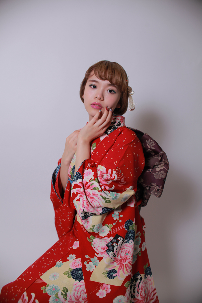 そう言えば先日スニップスさんのネイルの宣伝用にこのボディーの振袖を使ってもらったと書きましたが、その時の写真をもらったので載せます、やはり赤い振袖ってのは可愛いのです。