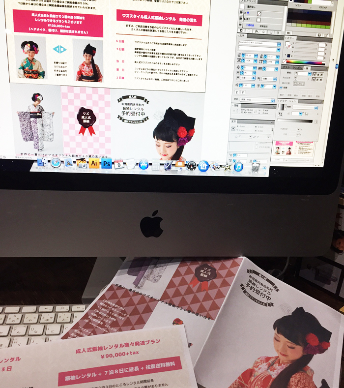 昨年は三条市や上越市で成人式向けのイベントをやってみたのですが、それの反応も徐々に増えてきまして、今年はもっと新潟市以外にもワズの振袖を発信していこうと思ってます、そのための「成人式の振袖を送料無料で発送しますので遠方の方も是非!」的なフライヤーも製作中なので、もし「うちのお店にフライヤー置くよ」なんて心優しい美容室の方がいらっしゃいましたらご一報下さい、大喜びで持っていきます!(本当に宜しくお願いします)