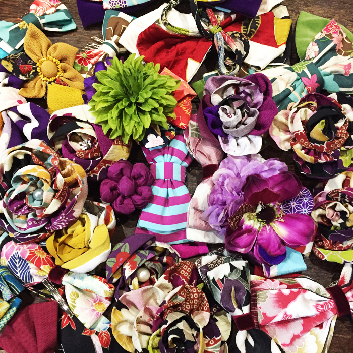 はい、これはつけすぎだと思います(笑)サンプル撮影だったので今回はやるだけやってみた感じですが、普通はこんなにつけません、でもつけてもいいんです、ワズの撮影プランのときは髪飾りつけ放題なのです、撮影用に用意してる飾りが山程ありますのでキモノと一緒にお選びいただけます(もちろん撮影時の髪飾りの貸し出しは無料です)