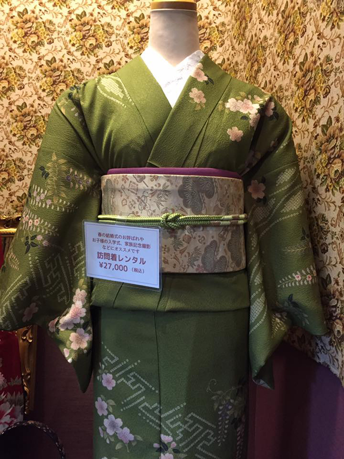 ボディーのキモノも桜柄の春モードです、春の結婚式や入学式に是非キモノレンタルをご利用下さい。