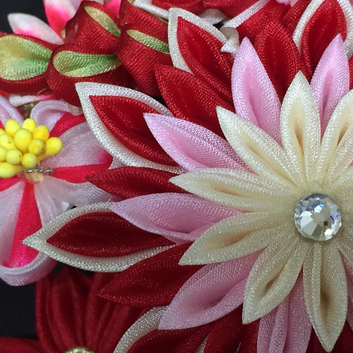 そんなお客様の中で印象に残った方が・・・お嬢様の成人式の髪飾りを探しにきたお父様なのですが、ワズに入ってこられてすぐに「こんな飾りを探しているのですが」と、スマホで画像を見せてくれました。お嬢様から送られてきた画像との事で、つまみ細工の髪飾りでした。