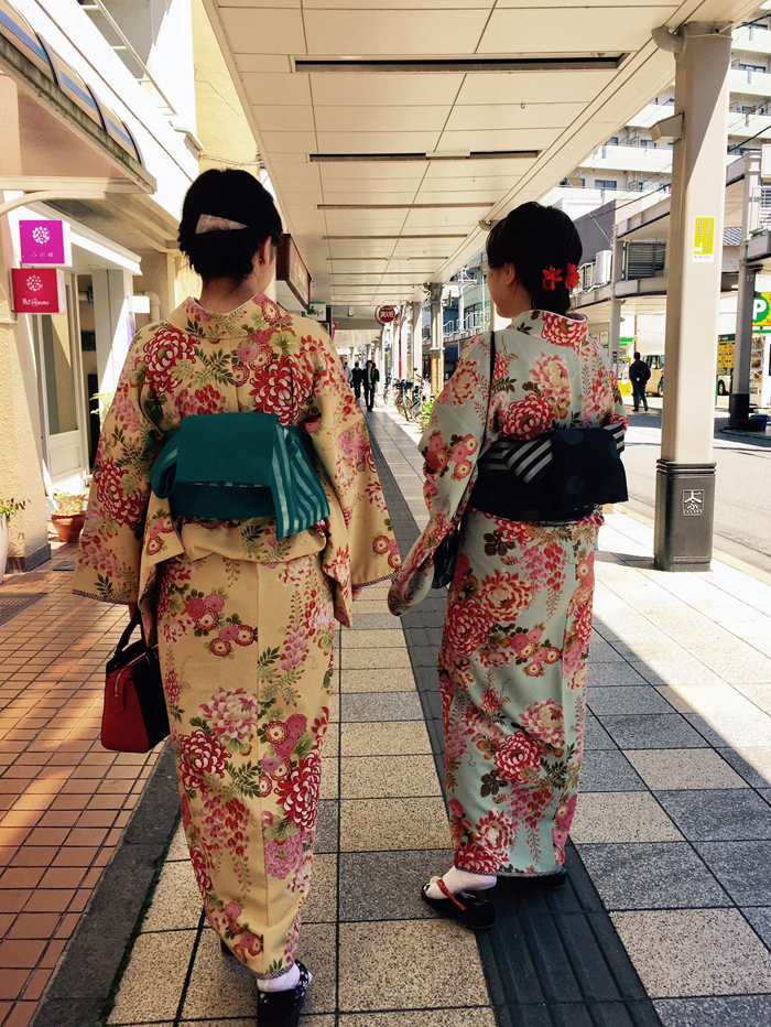 AMJキモノレンタルプラン、お友達で色違いの小紋