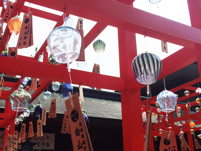 で、一緒に白山さまにも行きましたら明日から開催の風鈴まつりの準備が完了してましたよー、なかなか良いです、これ常にやってればいいのにってくらい素敵な音色。フェイスブックページに動画も載せましたよ。