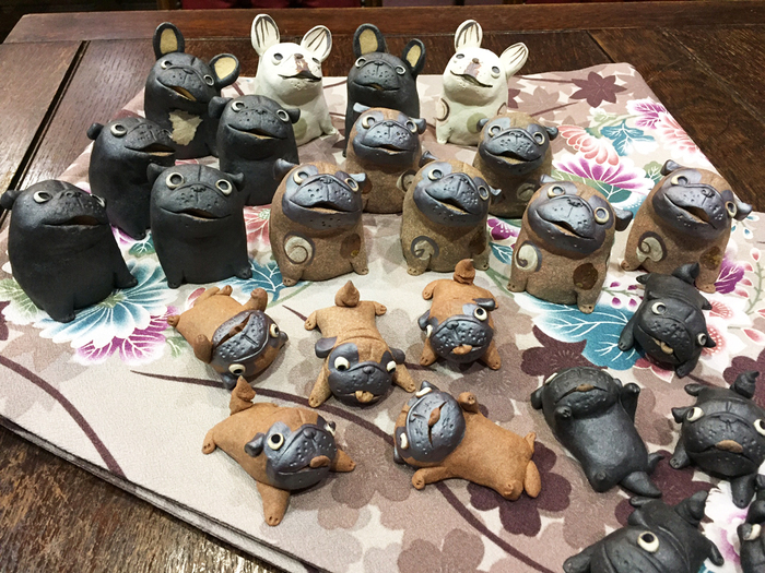 これは・・さかのぼる事数ヶ月・・ボクの趣味はインスタで全国のパグのページを見る事で(笑)その時も可愛いパグに癒されていたのです。そんな時に目にとまったのが、焼き物の超可愛いパグ人形!!「これ可愛いー、ほしー、ワズで売らせてほしー」なんて漠然と思っていたのですが・・・数日後・・思い切ってDMを送ってみました。