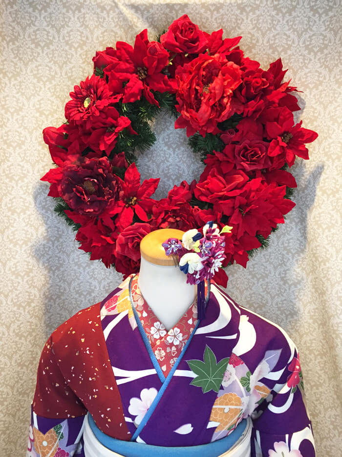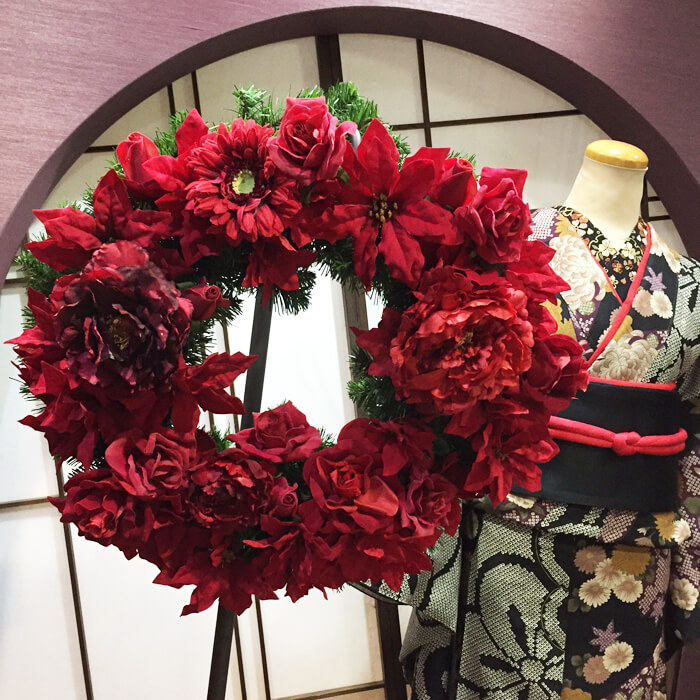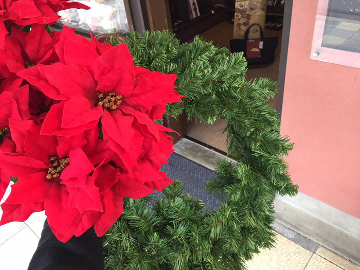 そんな着付けの最中に大きめな荷物が届きました、なんだろと思ったら昨日注文したクリスマスリース!!もう来た!!早っ!!昨日の夕方にポチっとやって大阪からもう届く・・