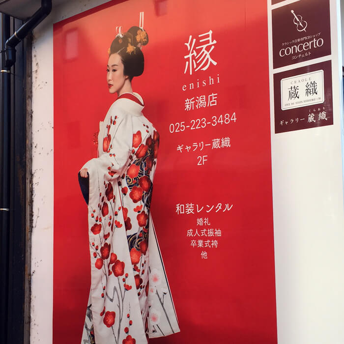 そしてそして西堀通りの1番町にできて昨日お祝いに行ってきたのが、縁(えにし)さんなのです!!聞いたことある人もいると思います、長岡のキモノレンタルショップで、昨年までワズと一緒にブライダルフリーペーパーHUKU HUKU に載ってたお店です。満を辞して新潟出店!!