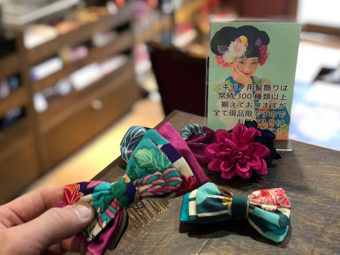 でも、卒業式だとリボン系をつけたいって方もいます、もちろん「キモノの髪飾りは新潟No1の品揃え(自称)」ですのでリボンも多数ご用意しておりますよ。