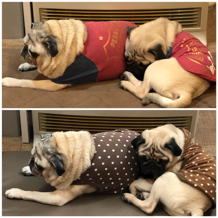 うちの愛犬たちの昨日の朝と今日の朝が服以外完全に一致 笑