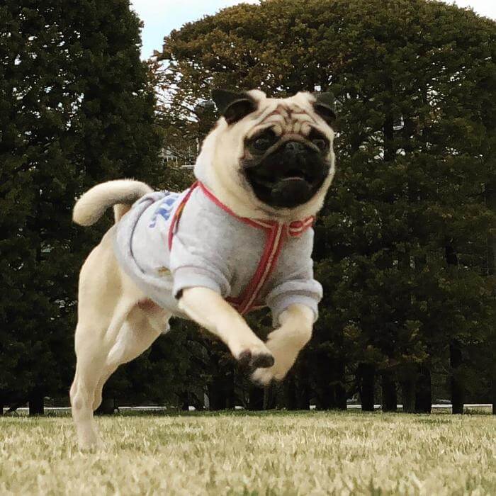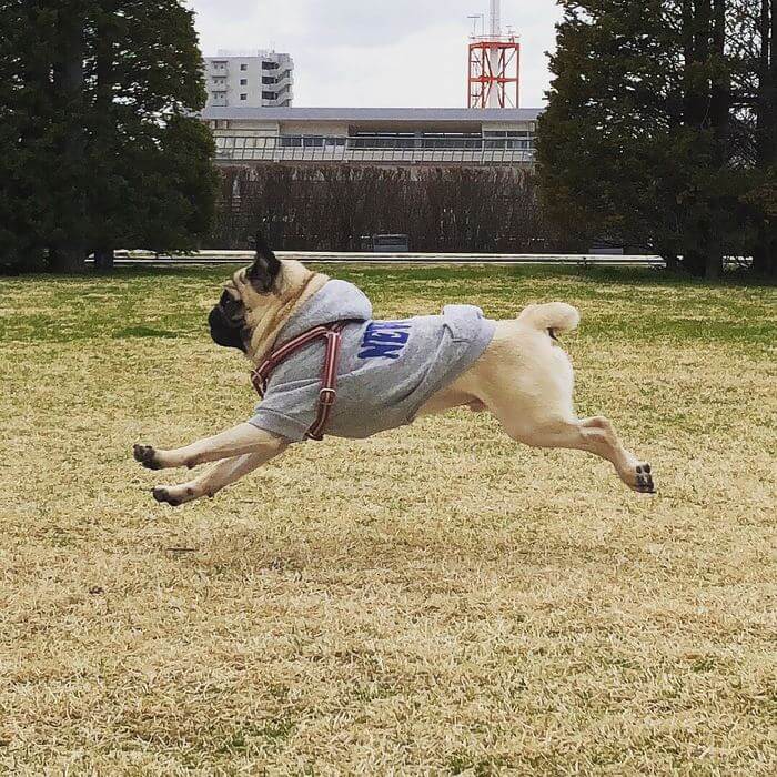 うちの新入りのトマくん(パグ生後半年の男の子)昨日のおやすみに公園デビュー!!今までは家の中とワズの中と古町のアーケードをリードに繋いで散歩だけだったので、広い公園で思いっきり走るのは初体験!!
