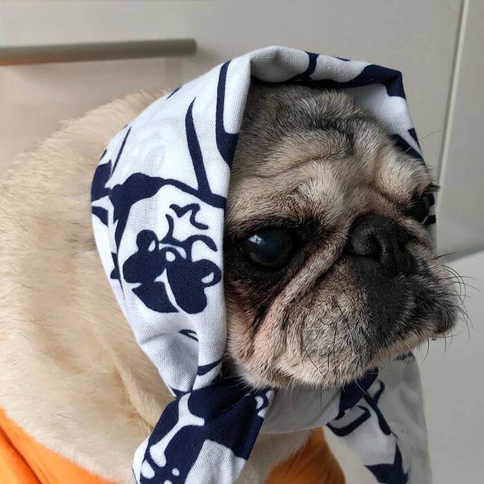 パグ手拭いの使い方の一例 笑