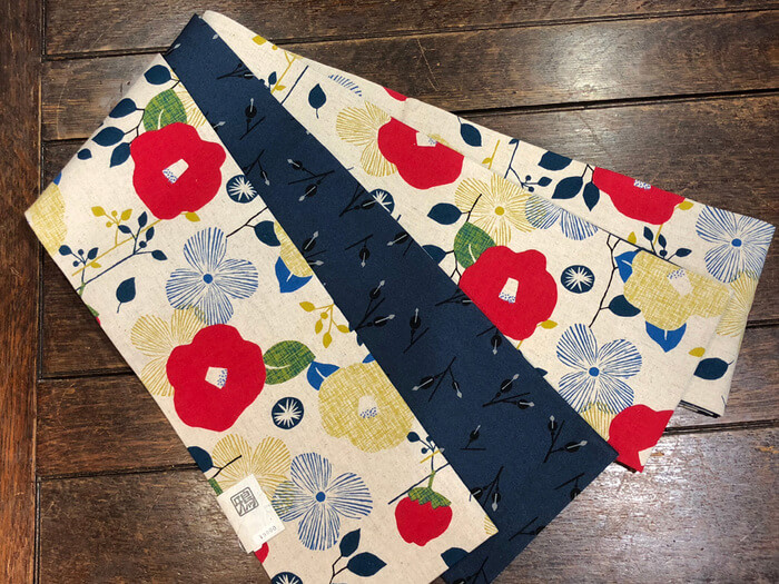 素材は綿100%で通常の半幅帯より少し長めで4m10cmくらいあります、長いということはそれだけいろいろなアレンジがしやすいってことです、シンプルなキモノやユカタで帯にこだわるのはワズ的にここ数年のブームです。
