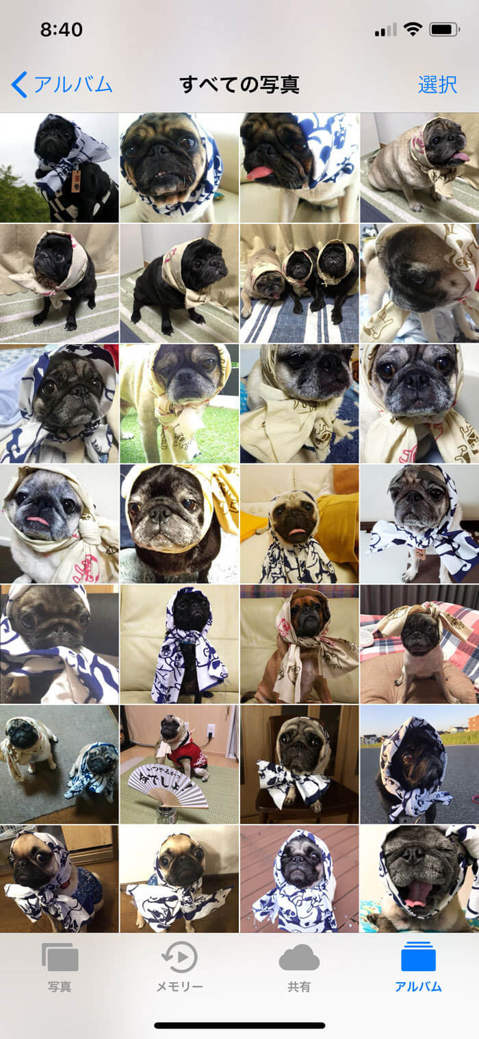 で、数日前にインスタで「パグスタイル の手ぬぐいを被っている写真を送ってください!」と投稿したところ・・・来るわ来るわの予想以上!!今もスマホが「ピロリン♪」となり続けてます、まだまだ来る!!嬉しいです。