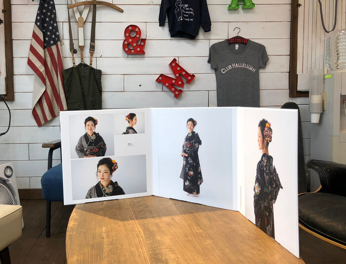 このような3面アルバムが人気です、同じ料金で12ページアルバムも作れるんですよ。