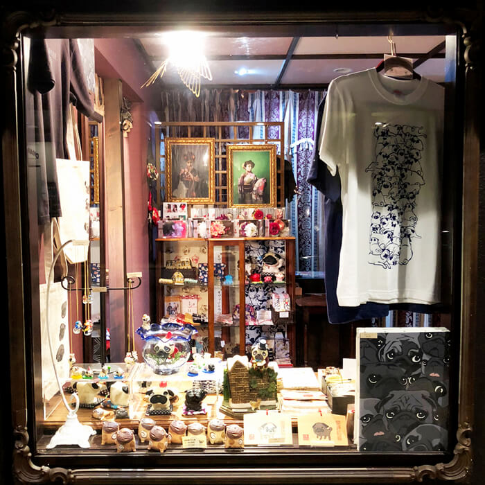 夜の営業はしておりませんが・・・閉店後もシャッターは開けたままで店内の照明も10時頃までつけていますので、夜の方が店内がすごく良く見えます、窓際はパグだらけですが・・・笑