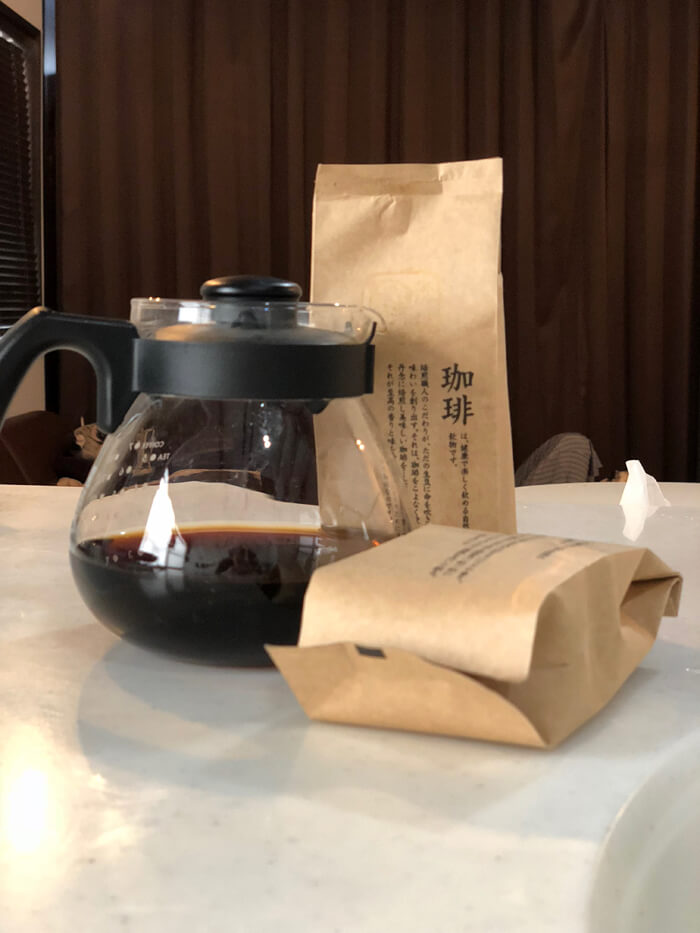 うちの麦ちゃんとトマくんとたくさん遊んでくれて、Tシャツやバッグなどもお買い上げくださって、さらに「コーヒー好きかい?」って聞かれたので「大好きです、朝は必ず飲みます」と言ったら「俺、趣味でコーヒーの焙煎してて、今車にあるから持って来るよ」と・・・いただいちゃいました、趣味とは思えないレベル。