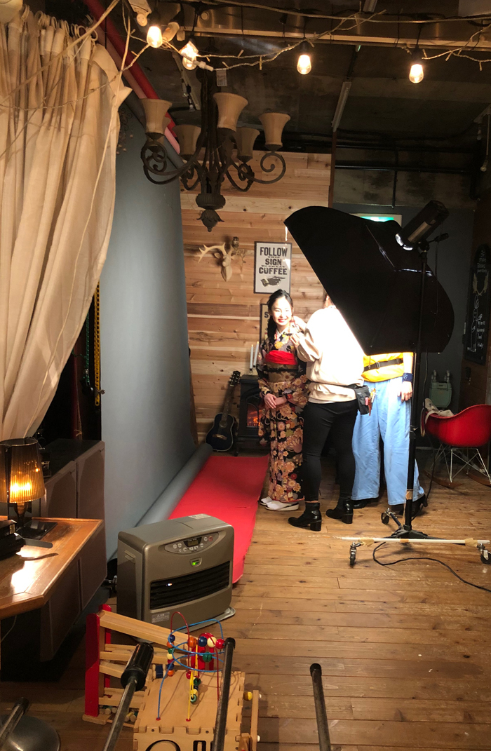 これは、いつも成人式の記念撮影でお世話になっている Takizawa photo works の代表カメラマンタキザワフミオ氏からの提案をいろいろと考えてプラン化していこうという案件で、Takizawa photo works の新プラン にぜひワズのキモノをつかって!という・・言わばコバンザメ的な 笑
